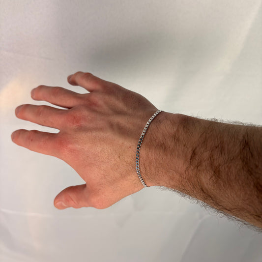 Solid .925 Sterling Silver Flat Cuban Link Bracelet 3mm