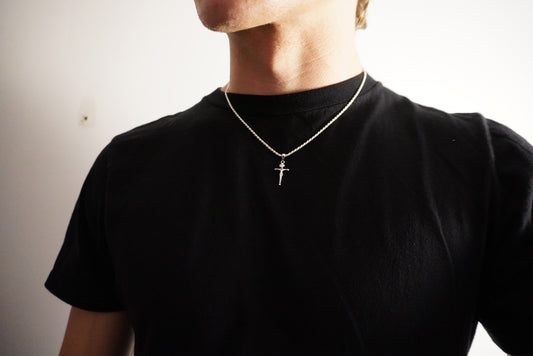 Solid .925 Sterling Silver Diamond Cut Rope And Cross Pendant Set 2mm