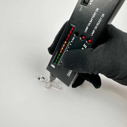 Small Certified VVS Moissanite Cross Pendant In Solid .925 Sterling Silver
