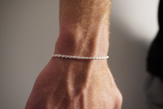 Solid .925 Sterling Silver Diamond Cut Rope Bracelet 2mm