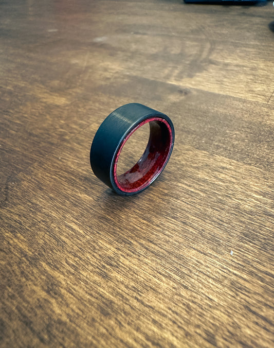 Satin Black Ring with Red Wood Inlay