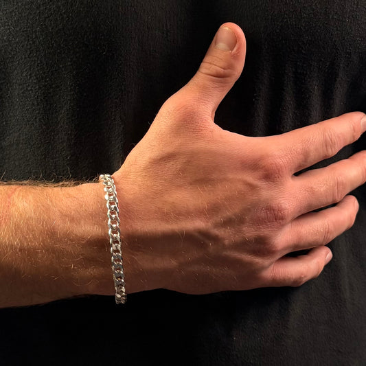Solid .925 Sterling Silver Cuban Link Bracelet In 8mm