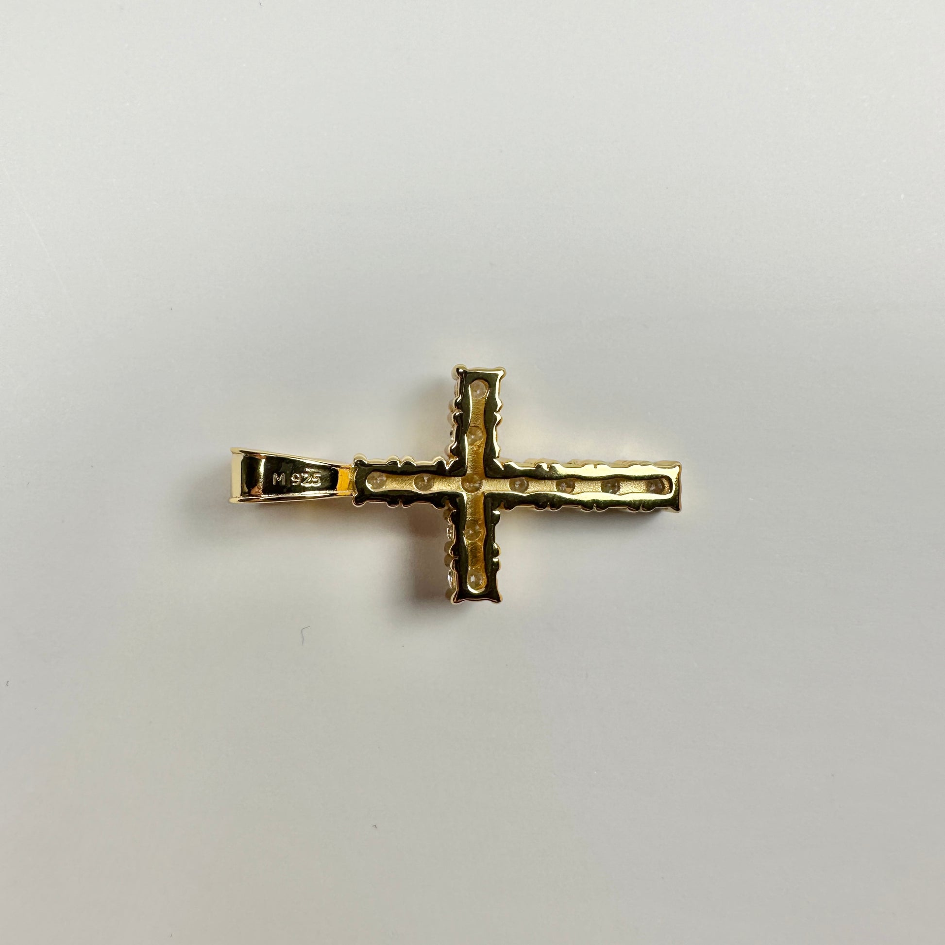 ~Beautiful 14K Gold Vermeil Cross Pendant With Certified Moissanite Stones~