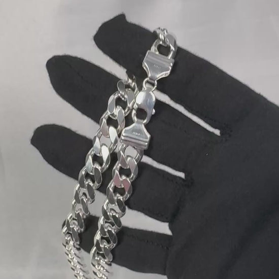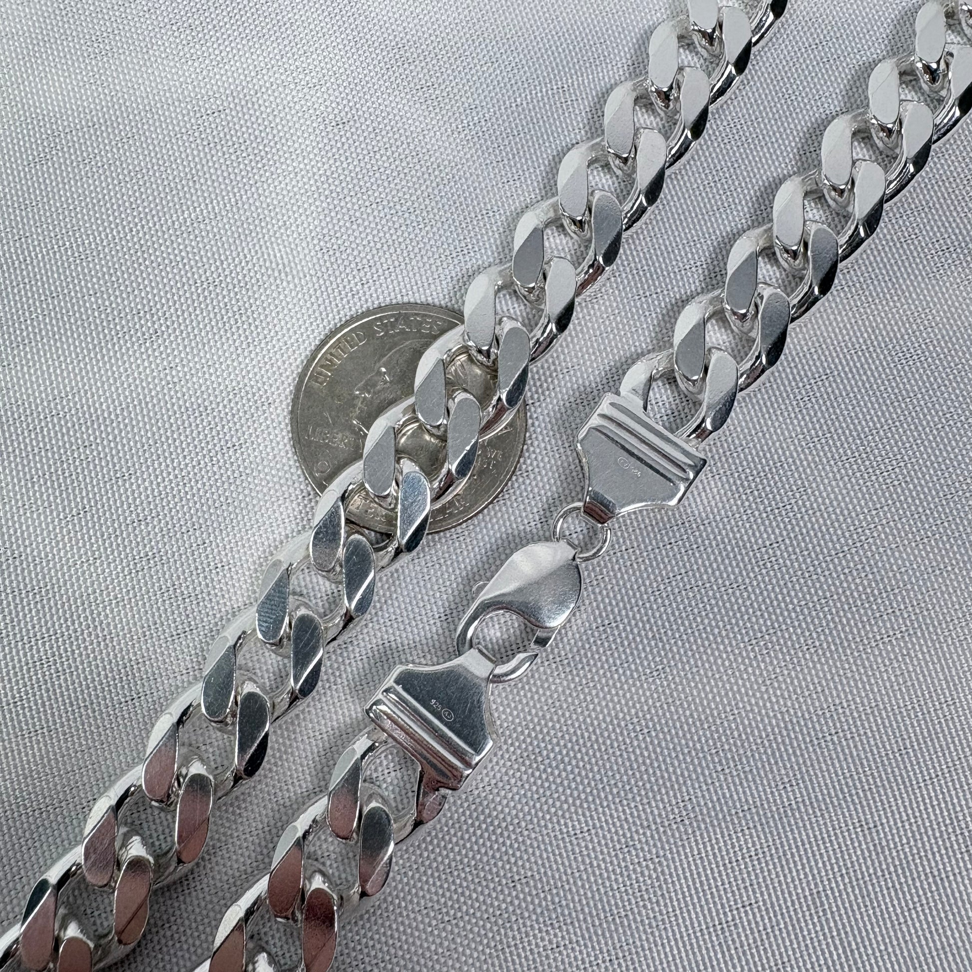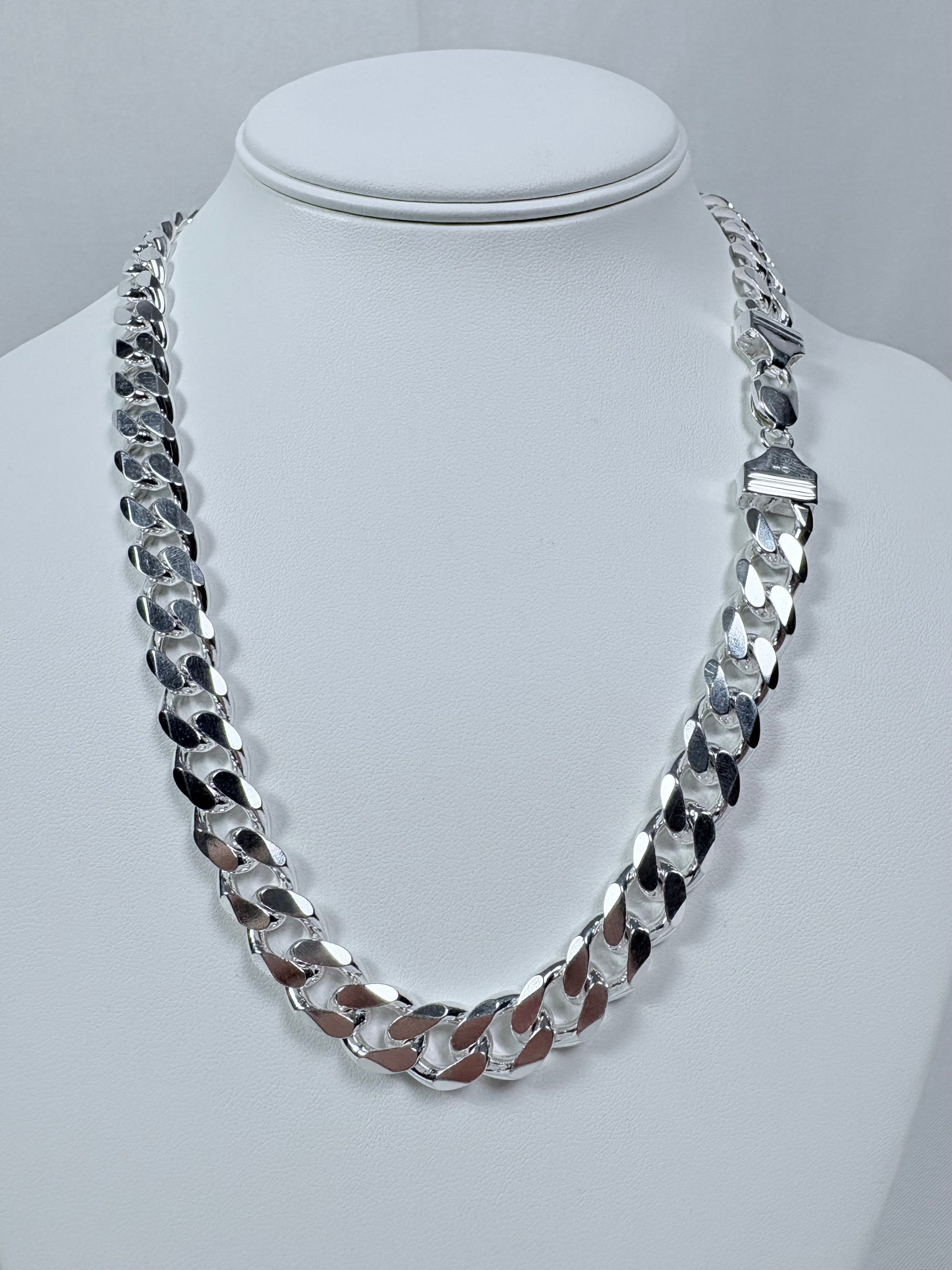 Solid .925 Sterling Silver Cuban Link Necklace In 11mm