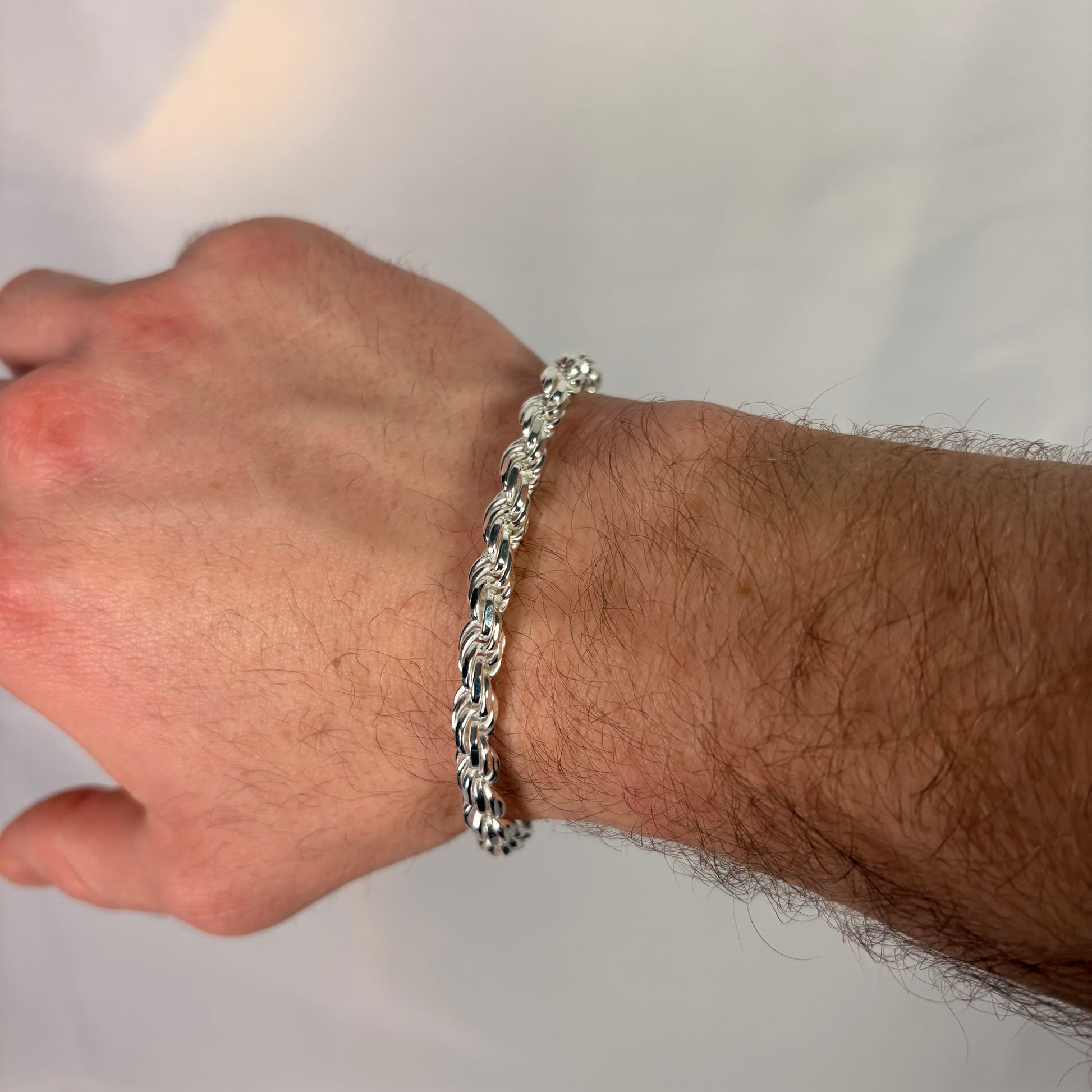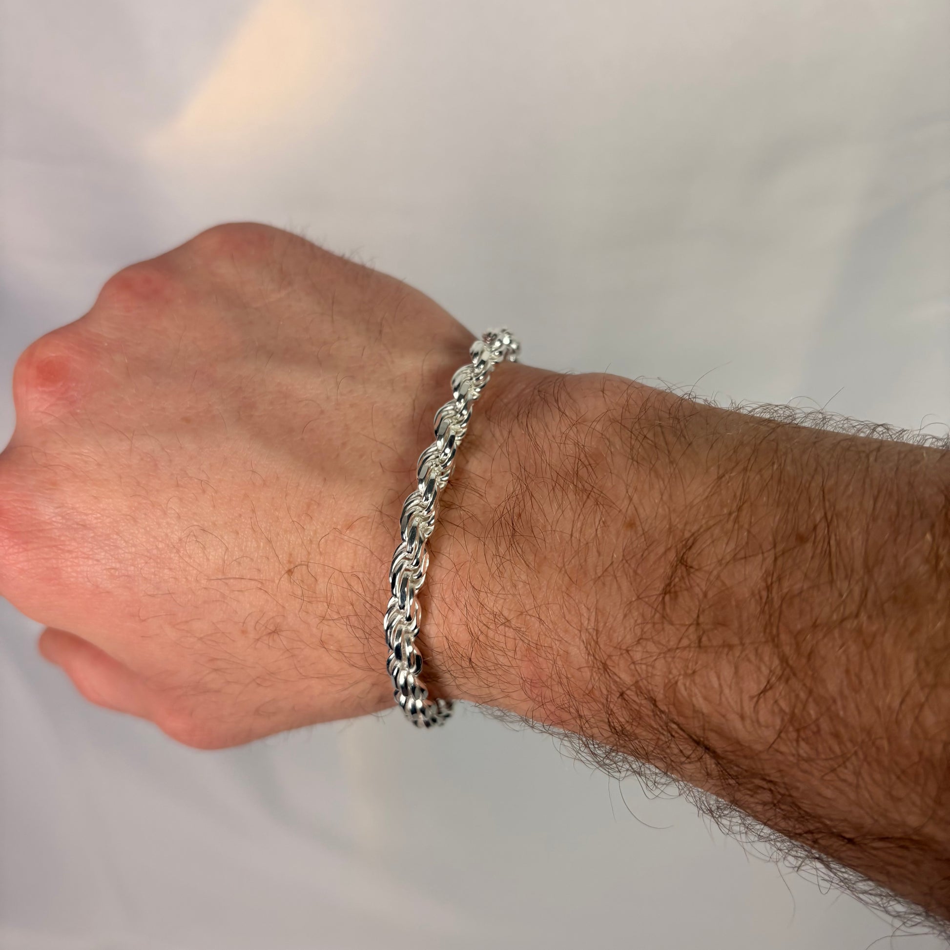Solid .925 Sterling Silver Diamond Cut Rope Bracelet 5.5mm