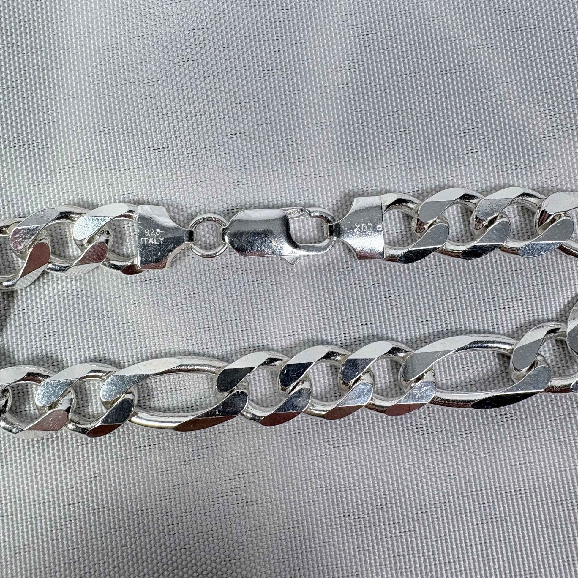 Solid .925 Sterling Silver Figaro Link Bracelet In 9mm 8 & 9 Inches
